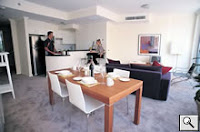 All studios and apartments have a fully equipped kitchen with microwave and dishwasher, and full individual laundry facilities. They also feature reverse cycle air conditioning, direct dial ISD telephone and voice mail, high speed internet connection, computer modem and facsimile access, video security intercom, TV, VCR and Mini Stereo CD player, hairdryer, and balcony. Rooms are serviced daily.dining